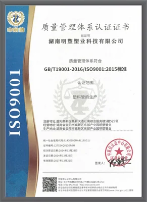 Ming Su specializes in manufacturing a diverse range of pipes. We are specialized in many series production, such as HDPE silicon core pipes, water supply pipeline, drainage pipeline, PVC-C power pipes, double - wall corrugated pipes, plastic corrugated pipes, metal corrugated pipes, PE lining pipes, carbon corrugated pipes, MPP power pipes and corresponding pipe fittings.